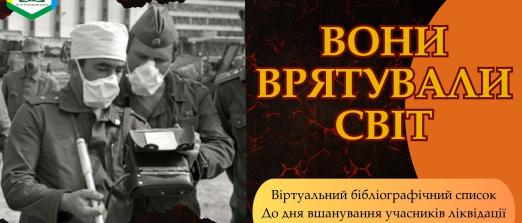 Бібліографічний список «Вони врятували світ» (до Дня вшанування учасників ліквідації наслідків аварії на Чорнобильській АЕС)