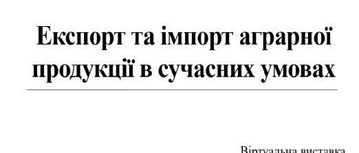 Віртуальна виставка «Експорт та імпорт аграрної продукції в сучасних умовах»