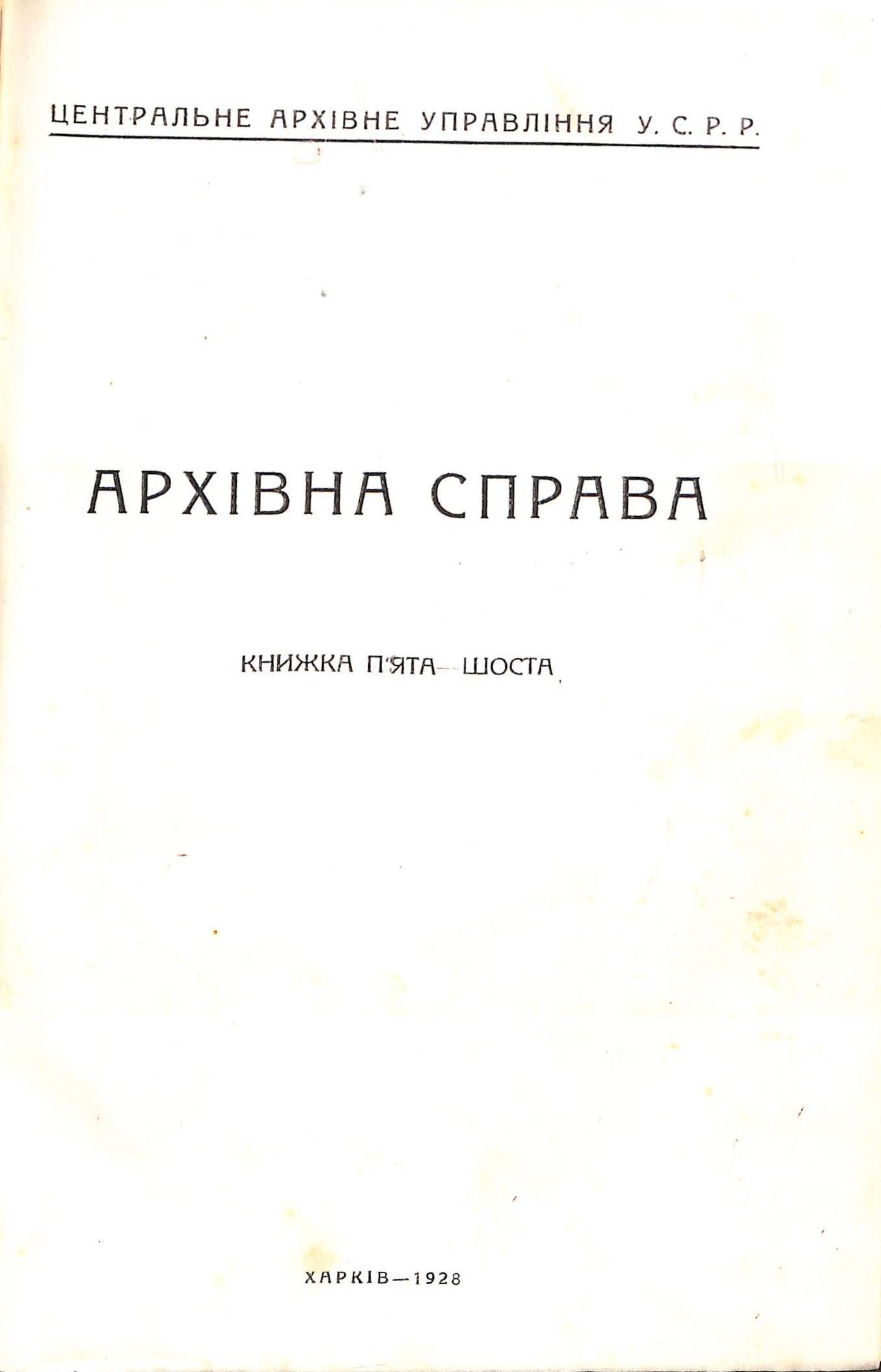 Архівна справа [Електронна копія]. Кн. 5-6 / Укрцентрархів. – Харків : Вид. Укрцентрархіва, 1928. – 118 с.