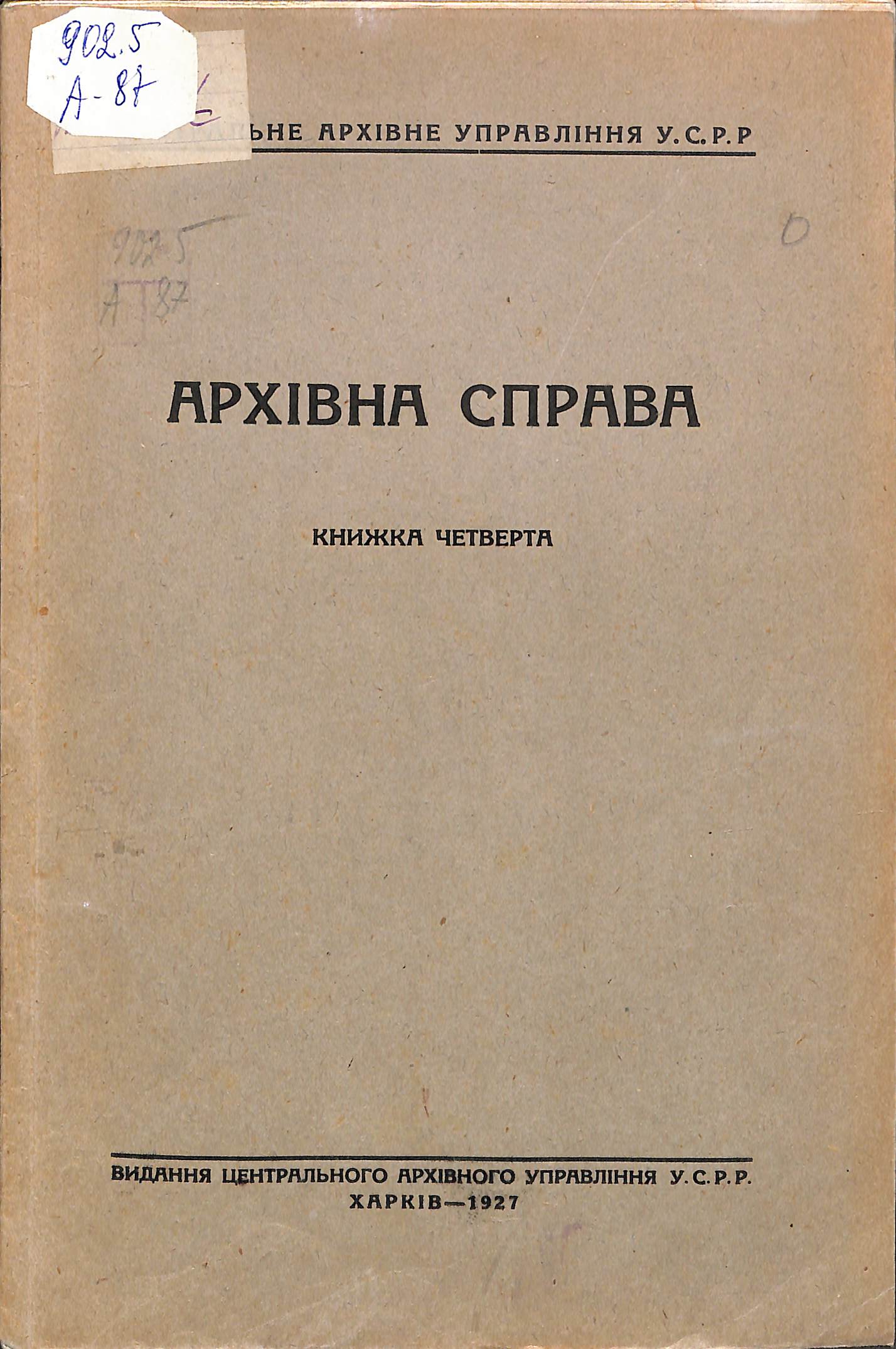 Архівна справа [Електронна копія]. Кн. 4 / Укрцентрархів. – Харків : Вид. Укрцентрархіва, 1927. – 107, 29 с.