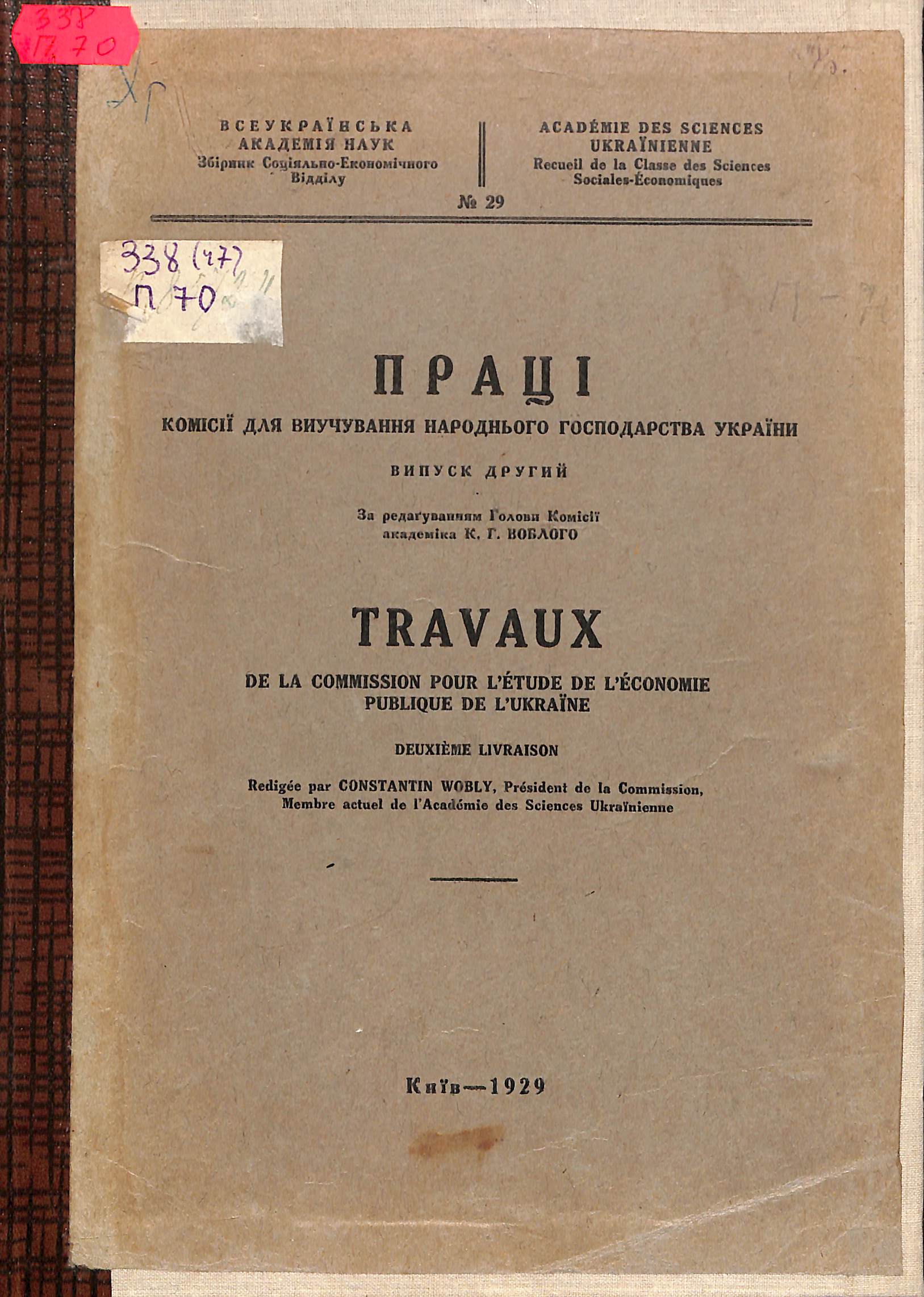 Праці Комісії для виучування народнього господарства України [Електронна копія]. Вип. 2 / ВУАН ; за ред. К. Г. Воблого. – У Київі : ВУАН (З друк. ВУАН), 1929. – IV, 258 с. – (Збірник соціально-економічного відділу / ВУАН ; № 29).