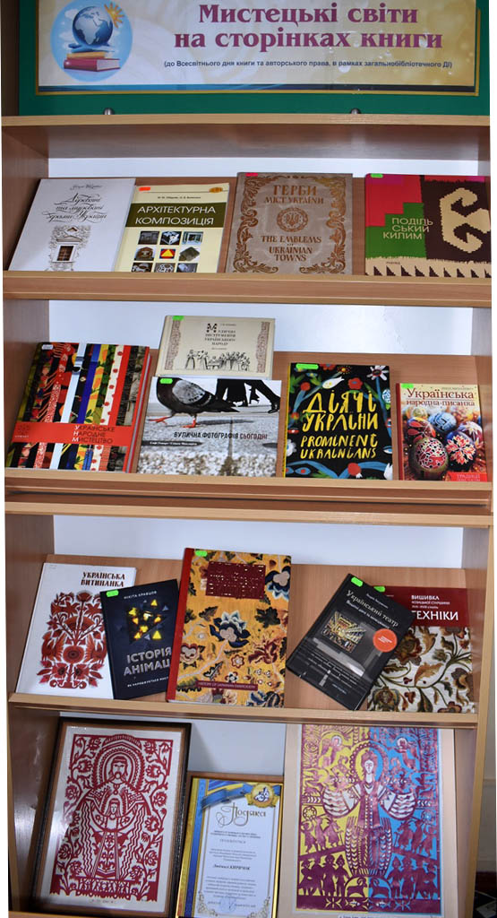 До Всесвітнього дня книги та авторського права відділ мистецтв запрошує відвідати книжково-ілюстративну виставку «Мистецькі світи на сторінках книги». На експозиції представлені альбоми із живопису, декоративно-ужиткового мистецтва; видання про архітектуру, фотографію та анімацію, театр, музику та кіно.