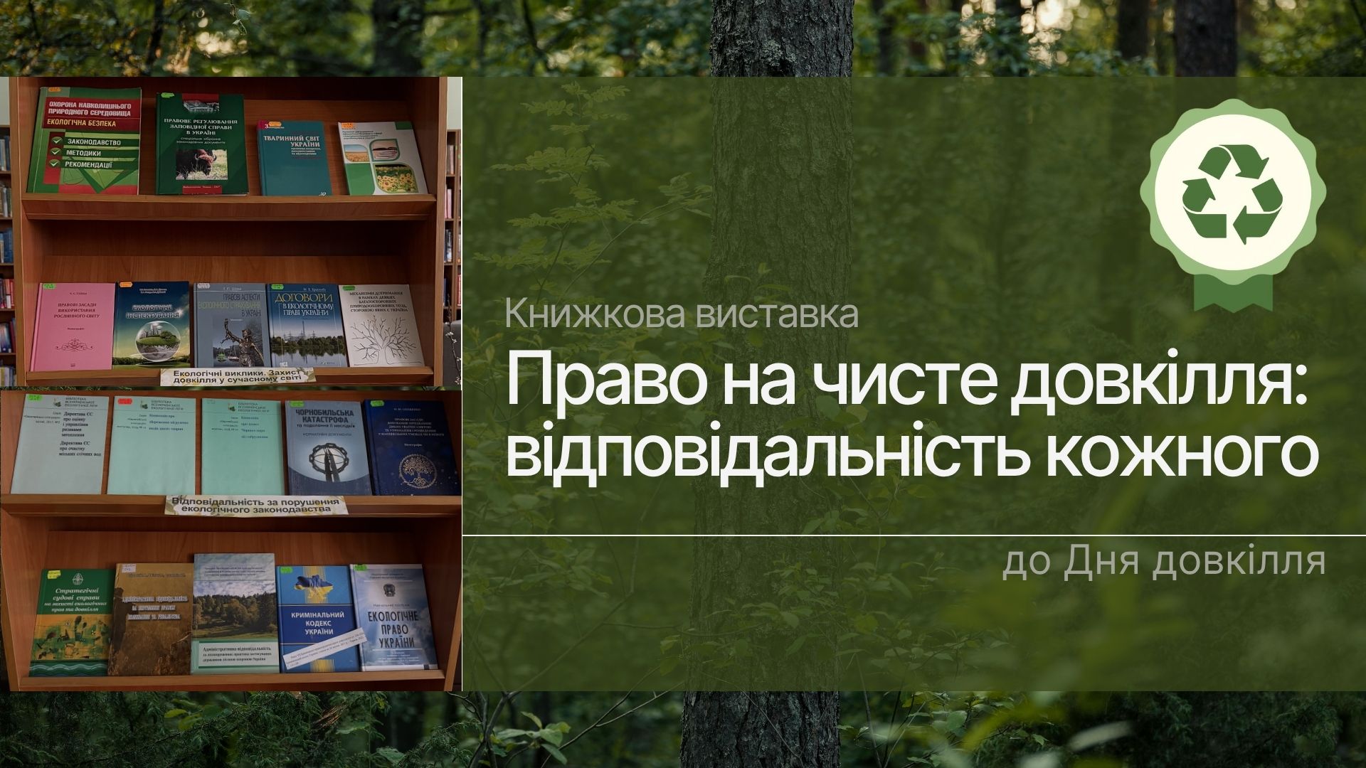 Книжкова виставка «Право на чисте довкілля: відповідальність кожного» (до Дня довкілля)
