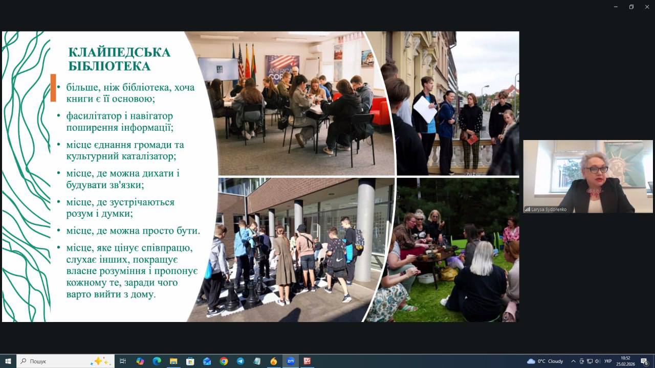 Онлайн-зустріч на тему «Клайпедська обласна бібліотека ім. Єви Сімонайтіте (Литва): працюємо і розвиваємося заради громади».