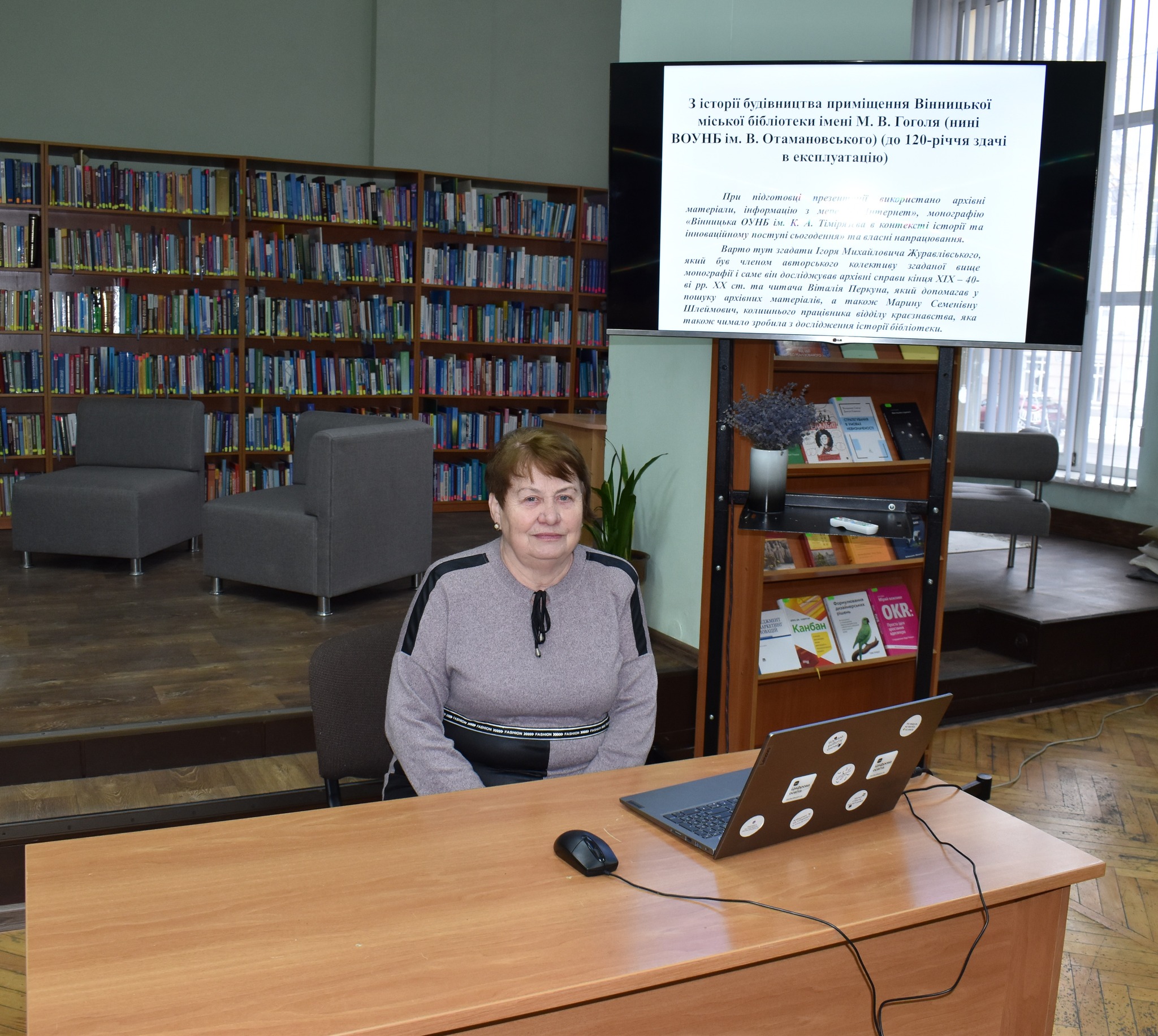 4 лютого у відділі новітніх технологій, економічних і юридичних наук відбулися заняття з підвищення кваліфікації колективу ВОУНБ ім. В. Отамановського. Презентацію на тему «З історії будівництва приміщення Вінницької міської бібліотеки імені М. В. Гоголя (нині ВОУНБ ім. В. Отамановського) (до 120-річчя здачі в експлуатацію)» представила учений секретар книгозбірні Поліна Цимбалюк.