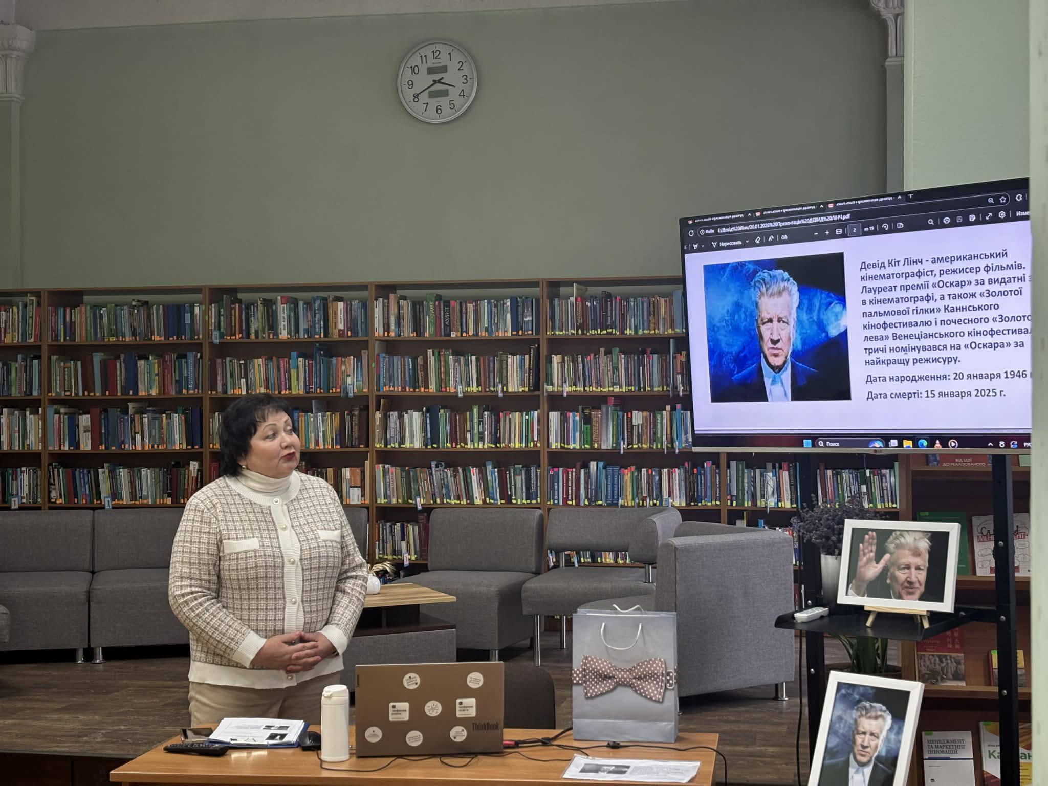 У відділі новітніх технологій, економічних і юридичних наук відбулася інформаційна година, присвячена феномену Девіда Лінча — режисера, який перетворив несвідоме на мову кіно, а тривогу, сни та внутрішні страхи — на художні образи.
