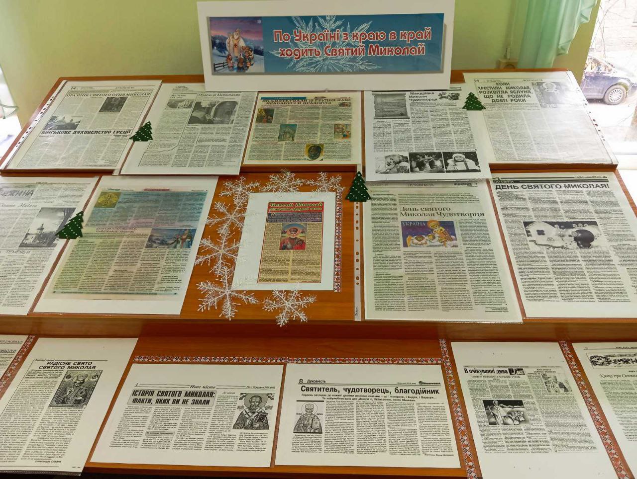 До Дня Святого Миколая сектор газетної періодики підготував виставку публікацій «По Україні з краю в край ходить святий Миколай».