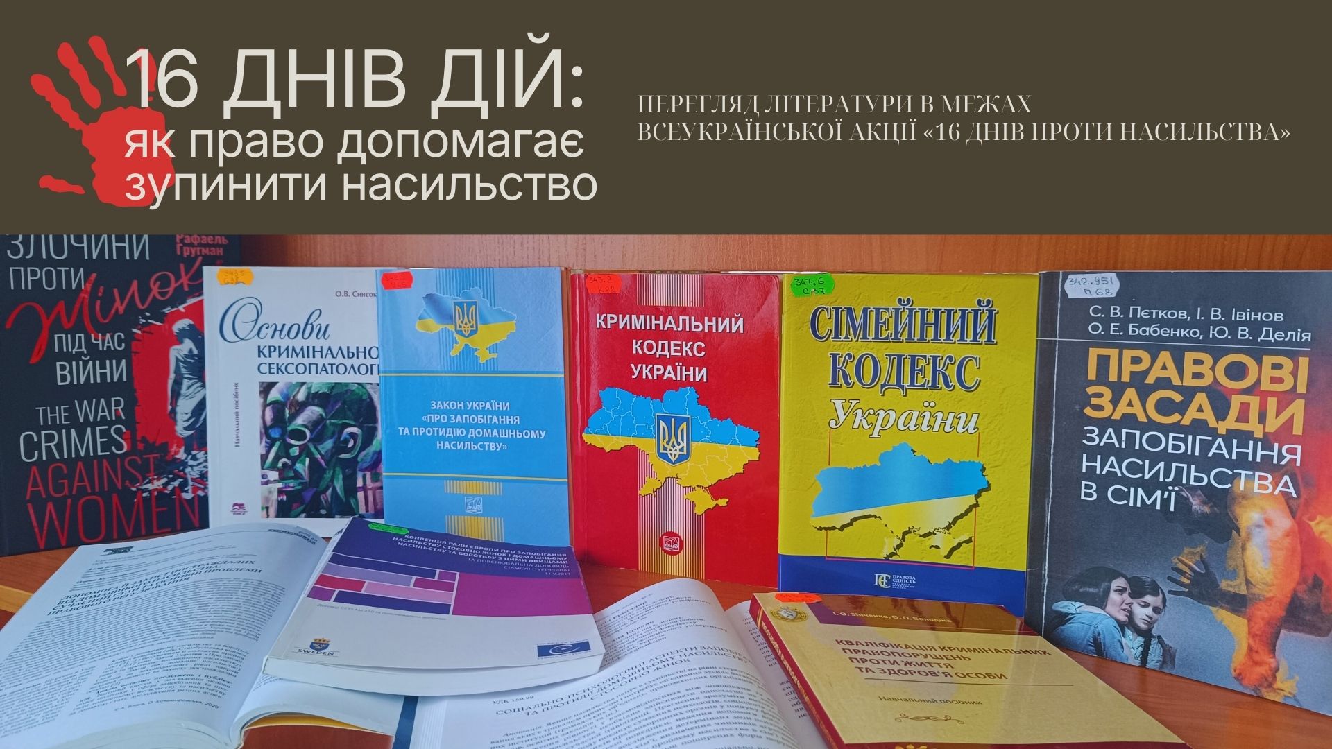 Перегляд літератури «16 днів дій: як право допомагає зупинити насильство» (в межах Всеукраїнської акції «16 днів проти насильства»)