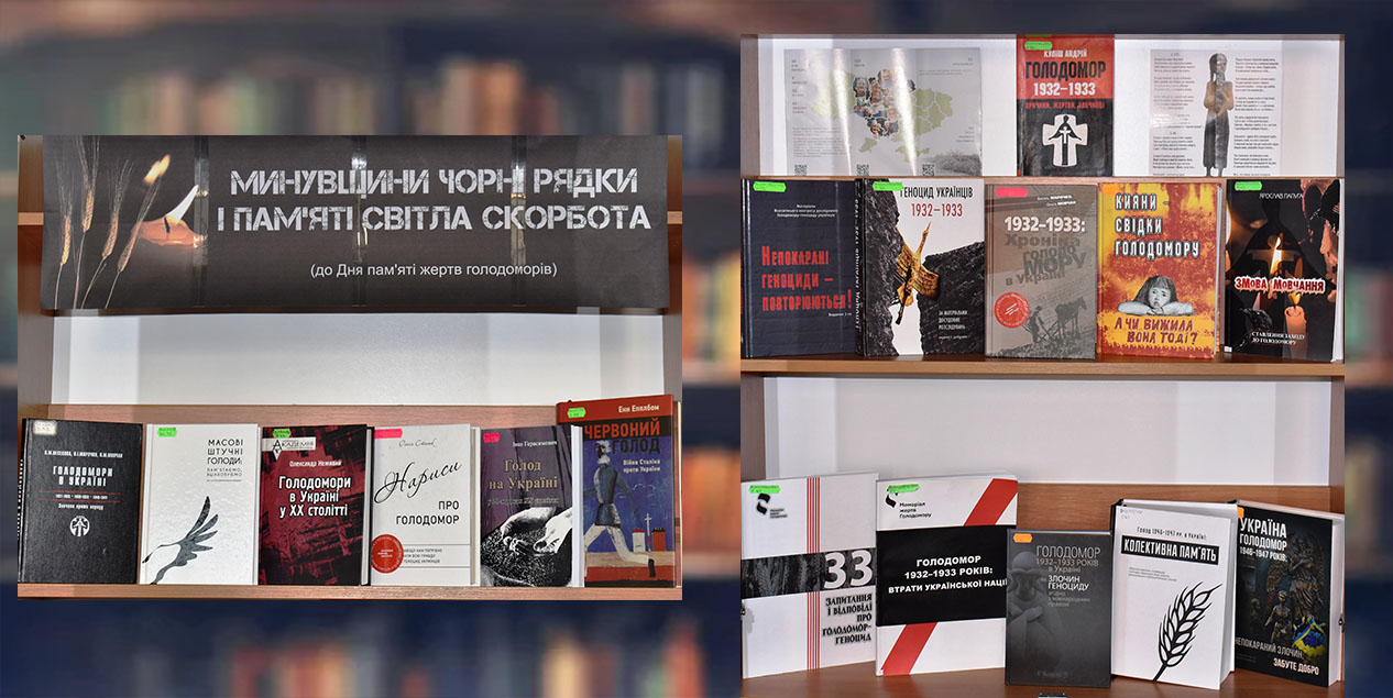 З метою вшанування пам’яті жертв голодоморів, відділ документів із гуманітарних, технічних та природничих наук ВОУНБ ім. В. Отамановського підготував виставку-вшанування «Минувшини чорні рядки і пам’яті світла скорбота».