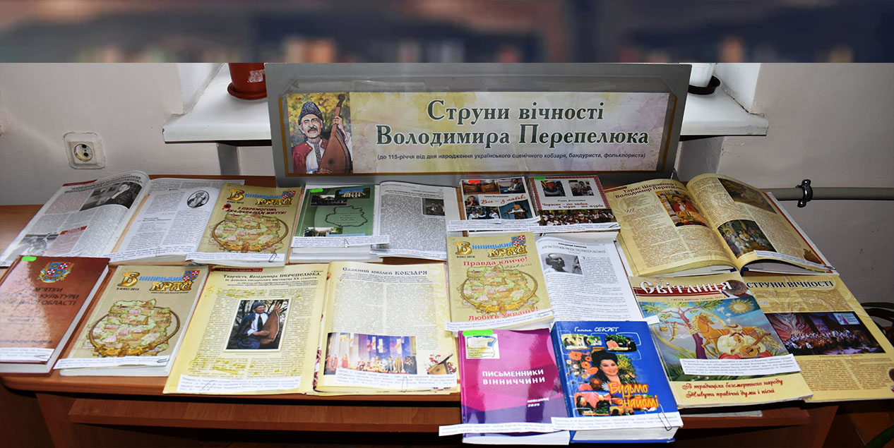 Книжкова виставка-ювілей «Струни вічності Володимира Перепелюка» (до 115-річчя від дня народження українського сценічного кобзаря, бандуриста, фольклориста)