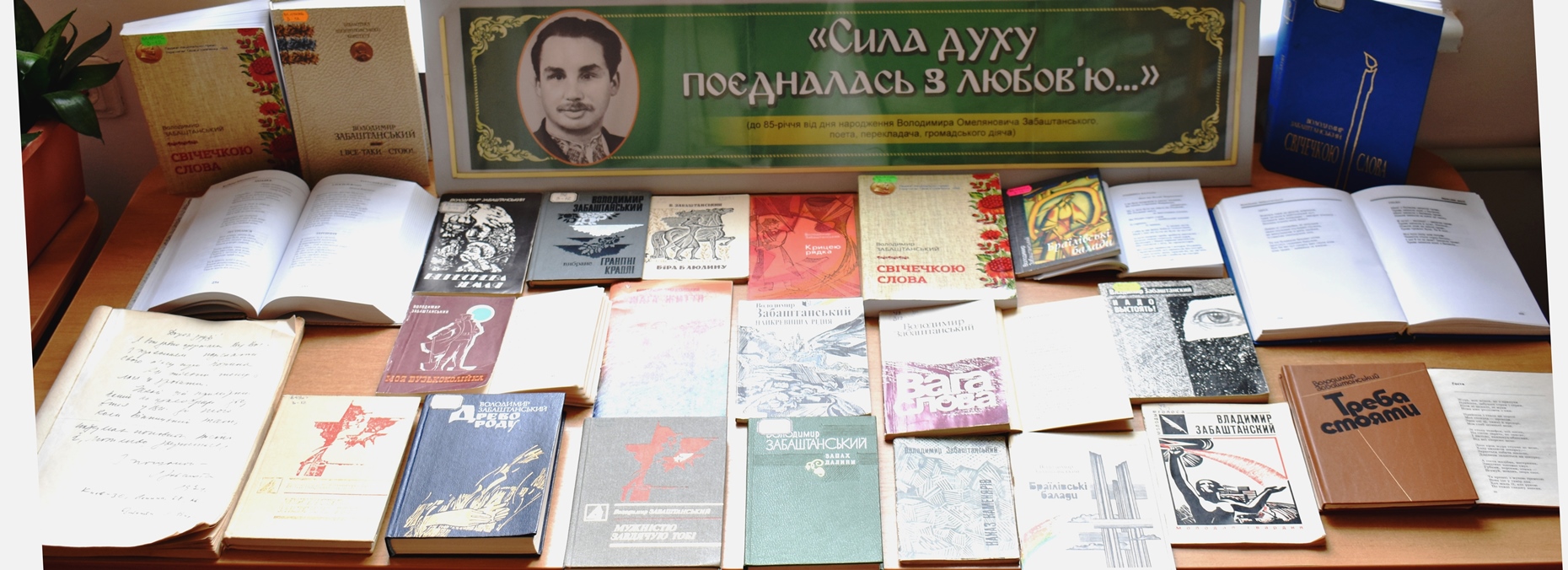 Книжкова виставка «Сила духу поєдналась з любов'ю...» (до 85-річчя від дня народження Володимира Омеляновича Забаштанського)