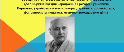 Віртуальна виставка «Фундатор професійного хорового мистецтва» (до 130-річчя від дня народження Григорія Верьовки, українського композитора, диригента, хормейстера, фольклориста, педагога)