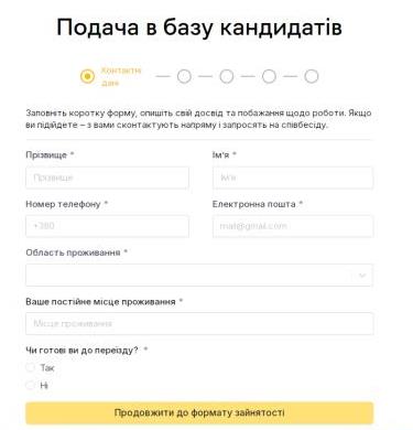 - Натисність Telegram-або Viber-бот у рубриці «Вакансії» та надішліть резюме (PDF), контакти та короткий мотиваційний лист.