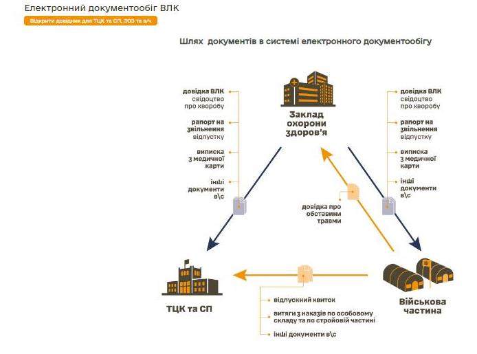Google-документ Електронний документообіг по ВЛК — порядок дій ТЦК та СП, ЗОЗ та в/ч детально описує алгоритми обміну медичними документами для військовослужбовців ЗСУ під час проходження військово-лікарської комісії (ВЛК). Він охоплює вступ, інформування про стаціонарне лікування (ролі закладів охорони здоров'я, військових частин, ТЦК), отримання довідки про обставини травми, постанови ВЛК про відпустку, лікування чи звільнення, з посиланнями на Постанову КМУ №901 та Наказ МОУ №280. Документ слугує інструкцією для координації між ТЦК, ЗОЗ та частинами через СЕДО, спрощуючи процес без фізичного переміщення паперів.