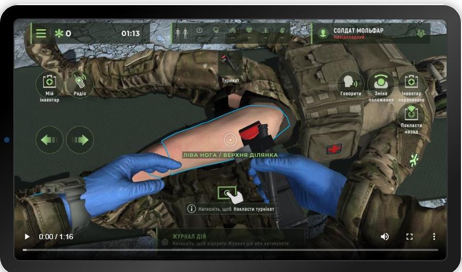 LifesaverSIM. Ігровий симулятор з тактичної медицини TCCC - це мобільний ігровий симулятор з тактичної медицини та домедичної допомоги, створений українськими розробниками разом з бойовими медиками та інструкторами TCCC. Він доступний за адресою https://www.lifesaversim.com/ua/ та у PlayMarket Симулятор такмеду TCCC та першої допомоги і перевірений у реальних бойових умовах ЗСУ.